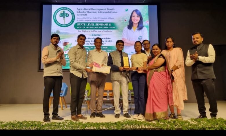 फलटण -एग्रीकल्चर डेव्हलपमेंट ट्रस्ट स्कूल ऑफ फार्मसी बारामती आयोजित राज्यस्तरीय पोस्टर प्रेसेंटेशन स्पर्धा दिनांक 3 जानेवारी 2026 रोजी पार पडली. सदर स्पर्धेत फलटण येथील सौ वेणूताई चव्हाण फार्मसी कॉलेज फलटण महाविद्यालयाचे प्रथम वर्षाचे विद्यार्थी कुमारी सिद्धी अडसूळ आणि कुमार तनमन बर्डे यांनी द्वितीय क्रमांक मिळविला व या विद्यार्थ्यांना पारितोषिक म्हणून प्रमाणपत्र,सन्मानचिन्ह व रुपये तीन हजार रुपये मिळाले .