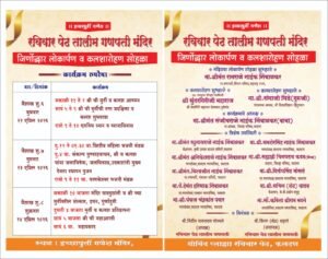 फलटण येथील रविवार पेठ तालीम गणपती मंदिराचा जीर्णोद्धार लोकार्पण आणि कलशारोहन सोहळा निमित्त दि.22 ते 24 एप्रिल या दरम्यान विविध धार्मिक कार्यक्रमांचे आयोजन